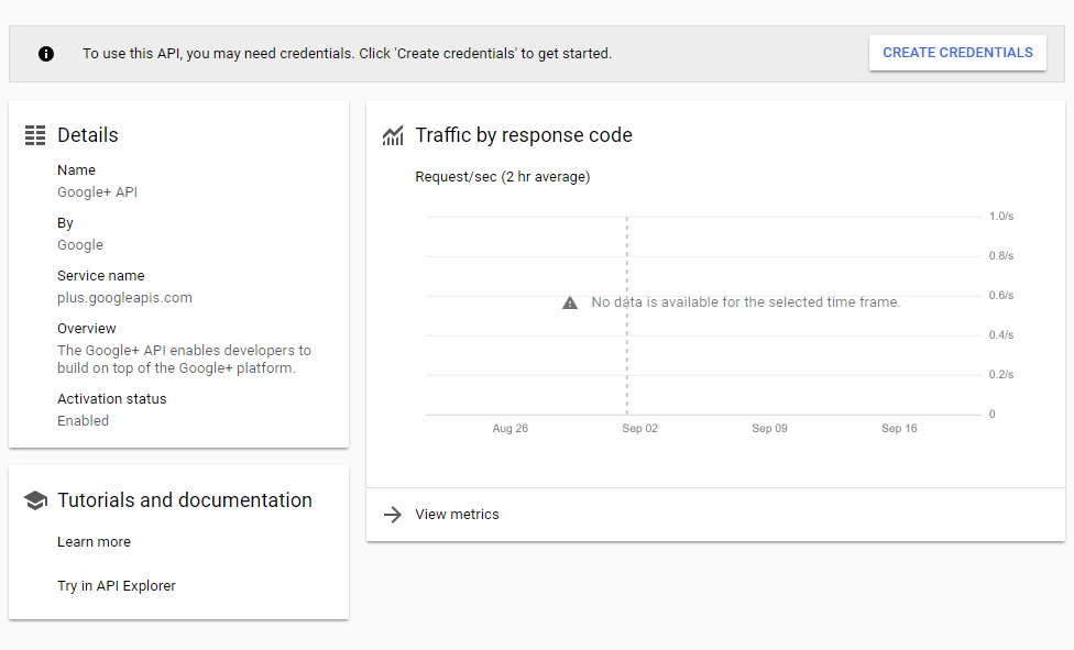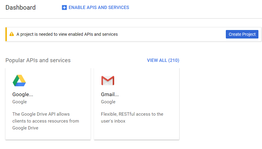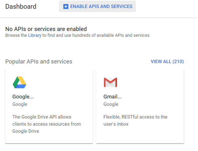 После создания проекта нужно включить API, к которому СЭП в качестве OAuth 2.0 клиента будет запрашивать доступ. Таким API является Google+. Для включения API нужно нажать кнопку ENABLE APIS AND SERVICES