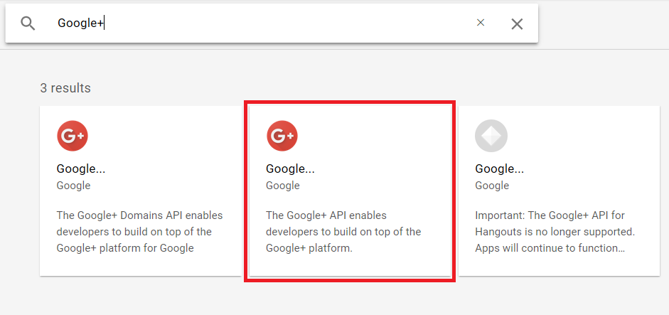 и найти в поиске Google+ API